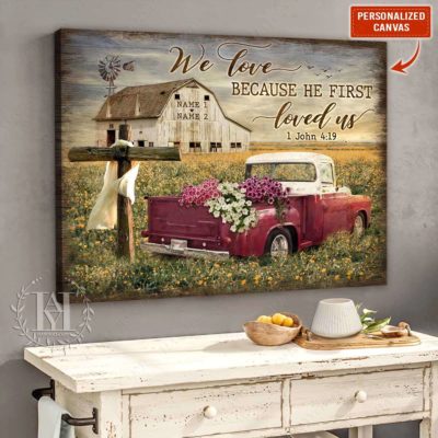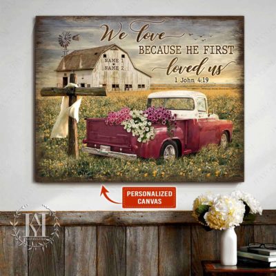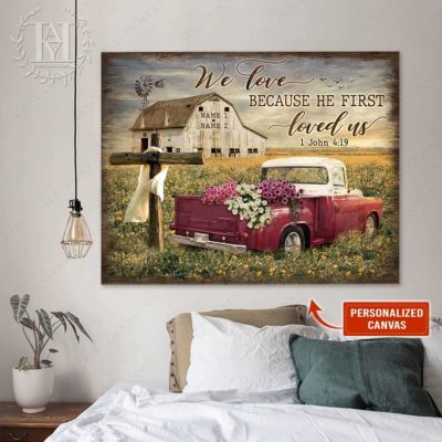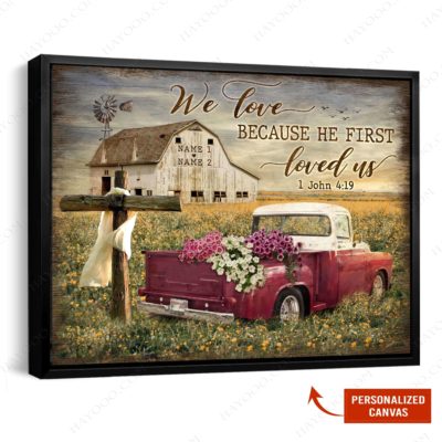 Hayooo Personalized Couple Canvas Gifts For Farmers With Flower Pickup Truck We Love Because He First Loved Us