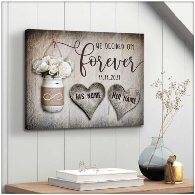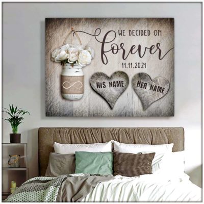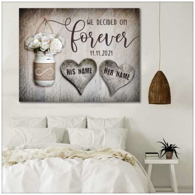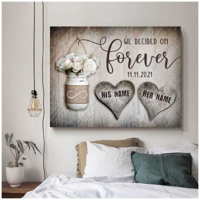 Hayooo Personalized Couple Canvas With Roses In Burlap Mason Jar Best Gift For Wedding Anniversary