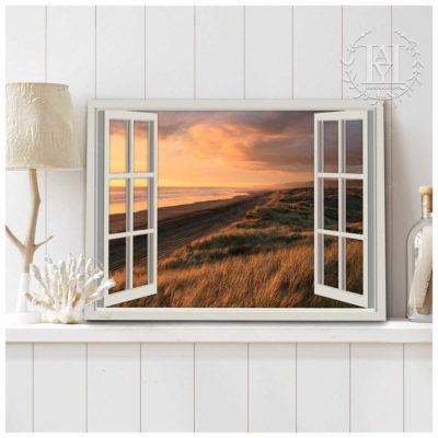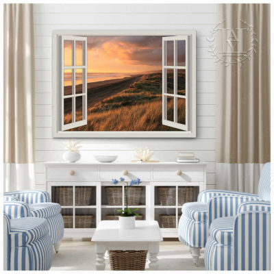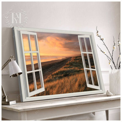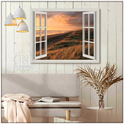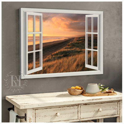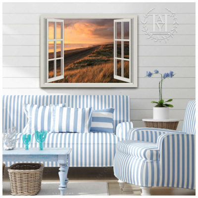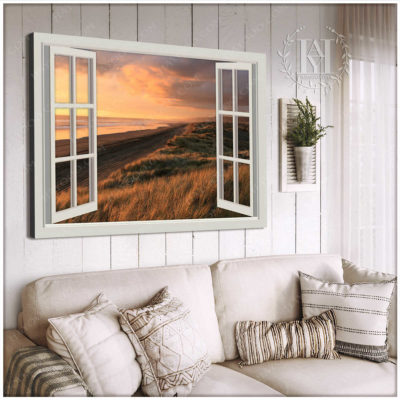 Hayooo Faux Window Canvas Peaceful Seashore At Sunset Wall Art For Home Decor