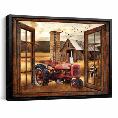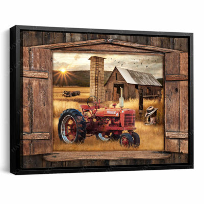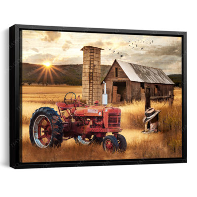 Hayooo Canvas Gorgeous Morning Scenery With Red Tractor And Rustic Barn Wall Art For Farmhouse Decor
