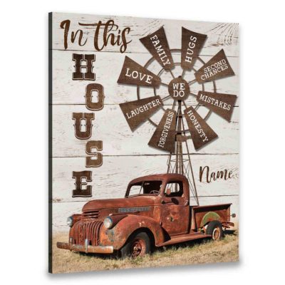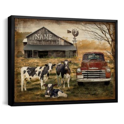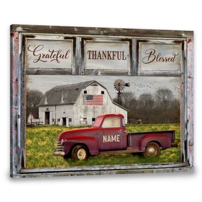 Hayooo Personalized Canvas Gifts For Farmers Old Pickup Truck And Rustic Barn Coming Home For Family
