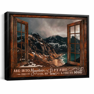 Hayooo Faux Window Canvas Gorgeous Mountain Scene And Into The Mountain I Go Wall Art For Home Decor