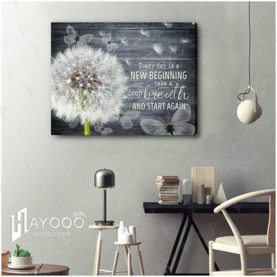Hayooo Top 10 Beautiful Dandelion With Butterflies Canvases Every Day Is A New Beginning Wall Art In Dark Night For Farmhouse Decor
