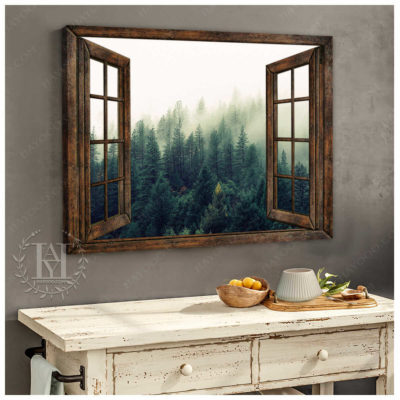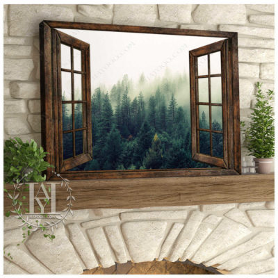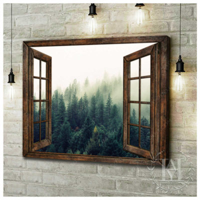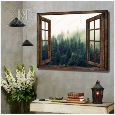 Hayooo Brown Faux Window Canvas Moody Forest Scene Wall Art For Home Decor