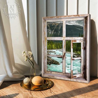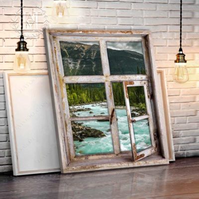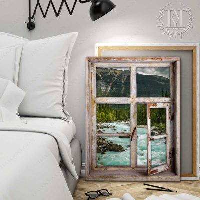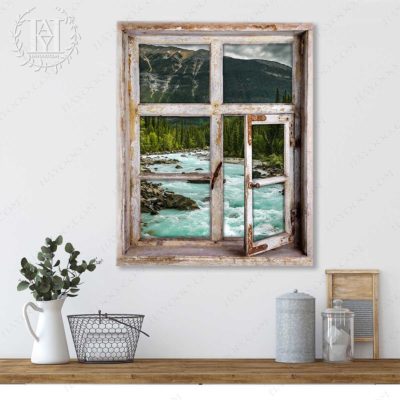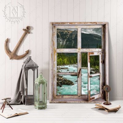 Hayooo Canvas Beautiful Nature Through Faux Window Wall Art For Home Decor