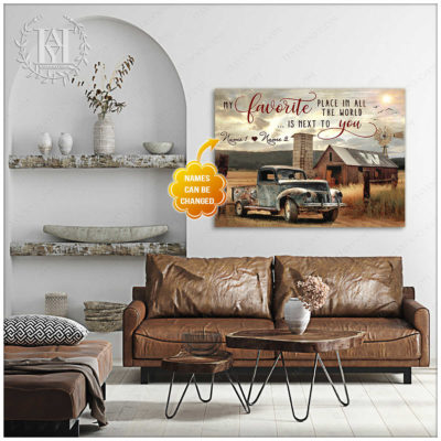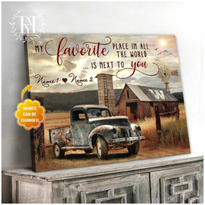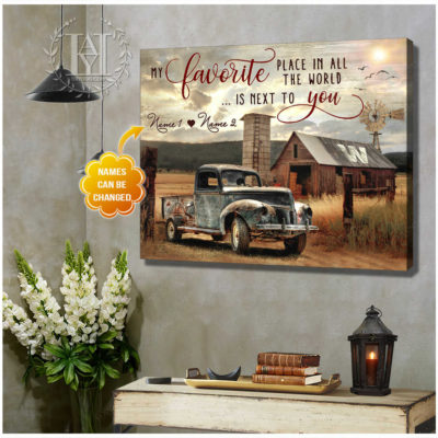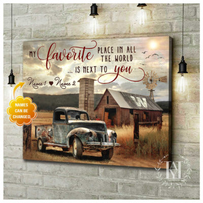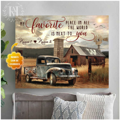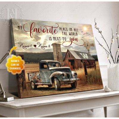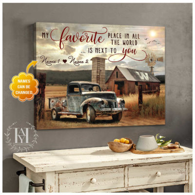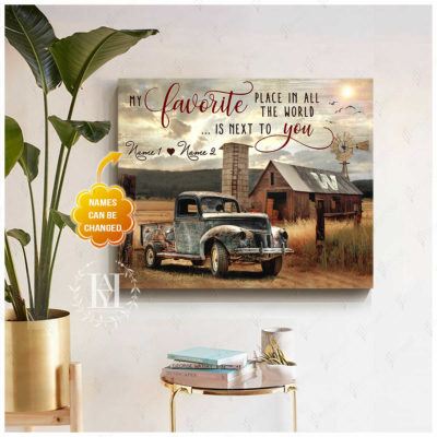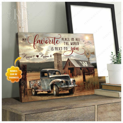 Hayooo Canvas Custom Couple Names With Rustic Pickup Truck And Country Scenery My Favorite Place In All The World Is Next To You