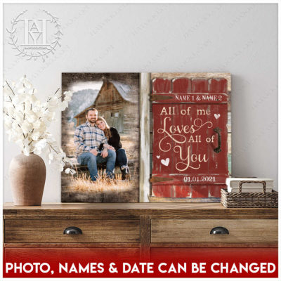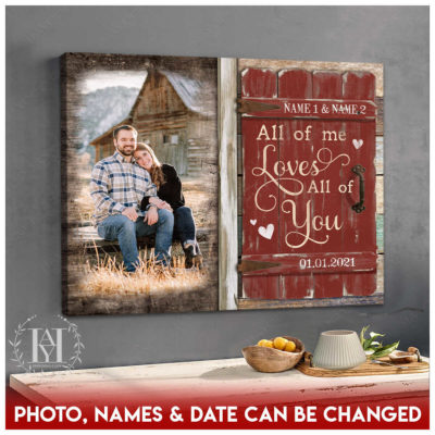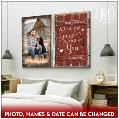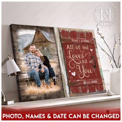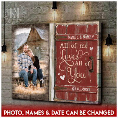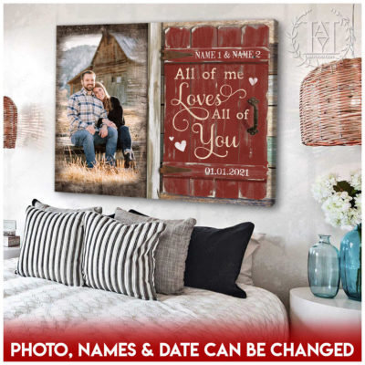 Hayooo Canvas Custom Photo For Wedding Anniversary With Barn Door Painting All Of Me Loves All Of You