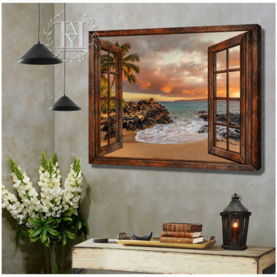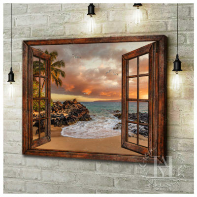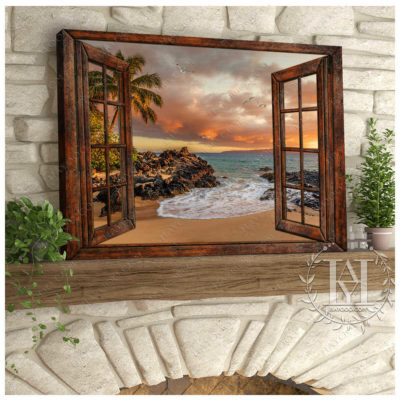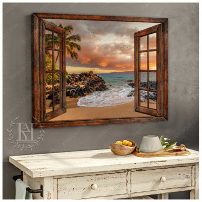 Hayooo Canvas Gorgeous Coastal Scenery Through Faux Window Wall Art For Home Decor
