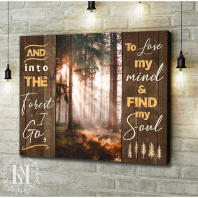 Hayooo Canvas Gorgeous Forest Scene With Sunlight And Into The Forest I Go To Lose My Mind And Find My Soul Wall Art For Home Decor
