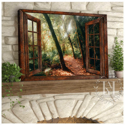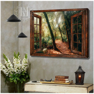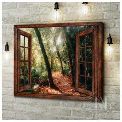 Hayooo Canvas Gorgeous Forest Scenery Through Faux Window Wall Art For Home Decor