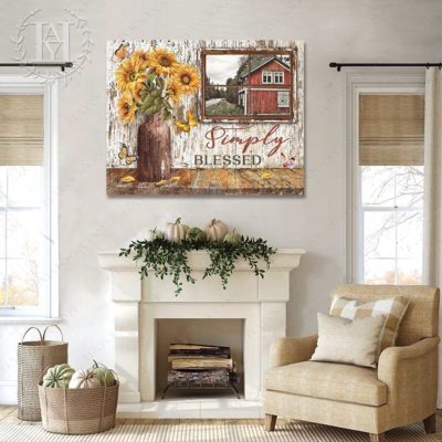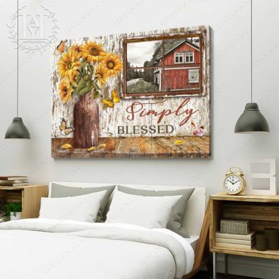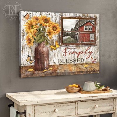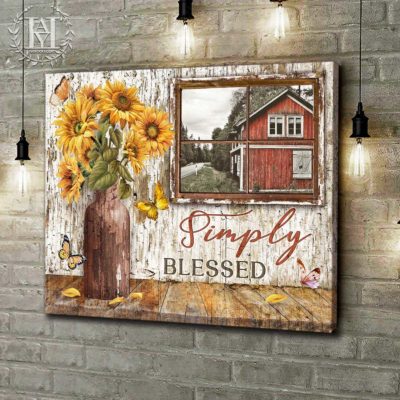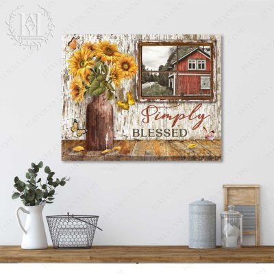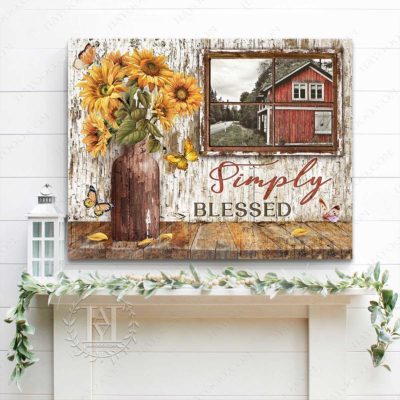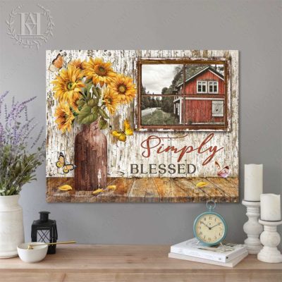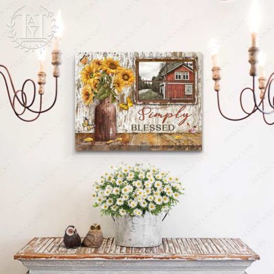 Hayooo Canvas Gorgeous Sunflower Vase Beside Rustic Window With Barn View Simply Blessed Wall Art For Farmhouse Decor