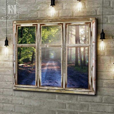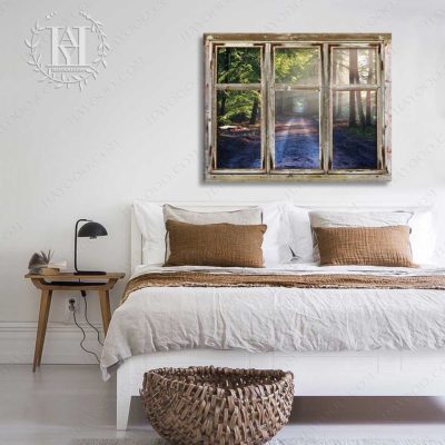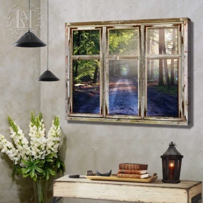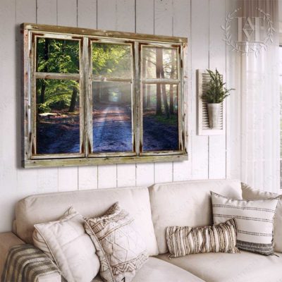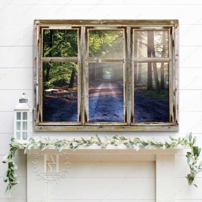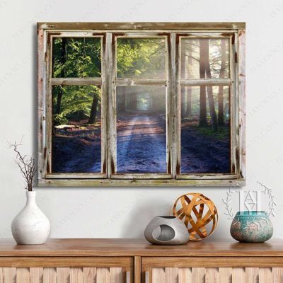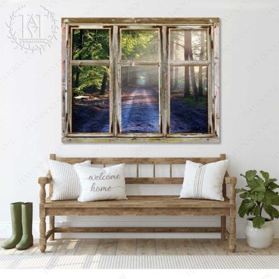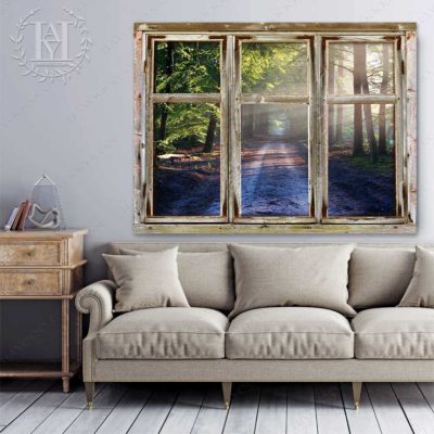 Hayooo Canvas Morning Forest Through Faux Window Wall Art For Home Decor