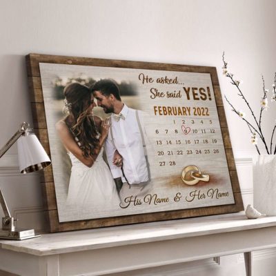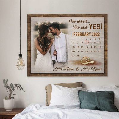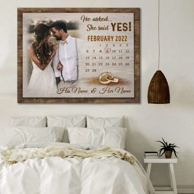Hayooo Canvas Personalized Anniversary Gifts Wall Art Above Bed Decor Love Calendar He Asked She Said Yes