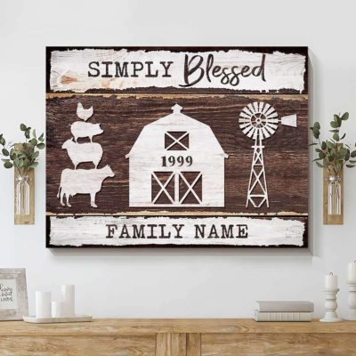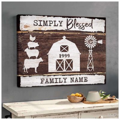 Hayooo Canvas Personalized Farm Animals Barn And Windmill Simply Blessed Wall Art For Farmhouse Decor