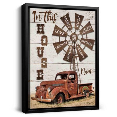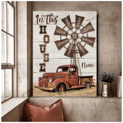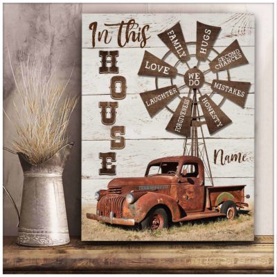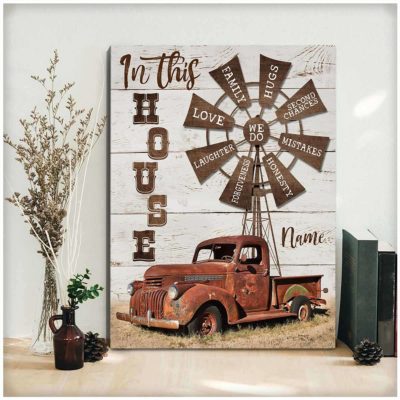 Hayooo Canvas Gifts For Farmers Personalized Farm Truck And Windmill In This House Wall Art For Farmhouse Decor