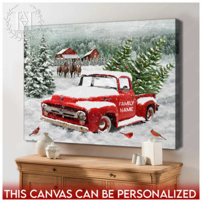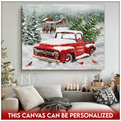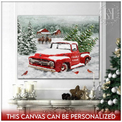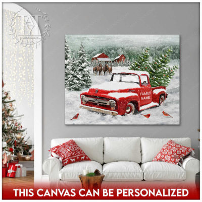Hayooo Christmas Canvas Gifts For Farmers Farmhouse Horses And Pickup Truck