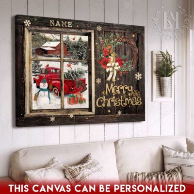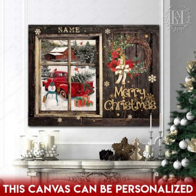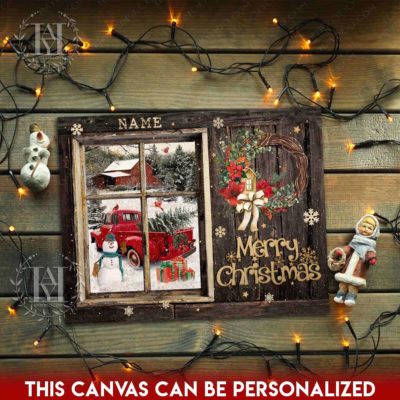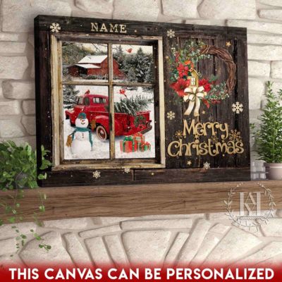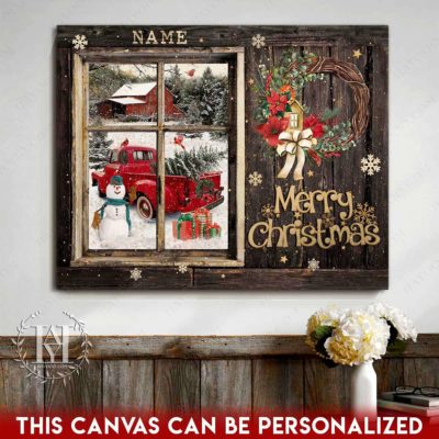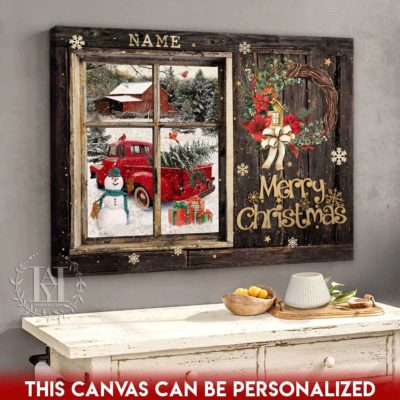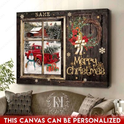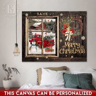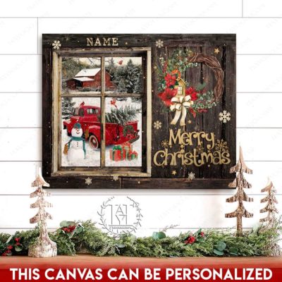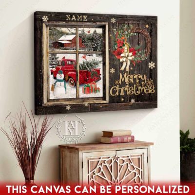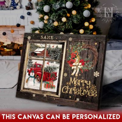 Hayooo Christmas Canvas Gifts For Farmers Snowy Scene With Pickup Truck Through Faux Window