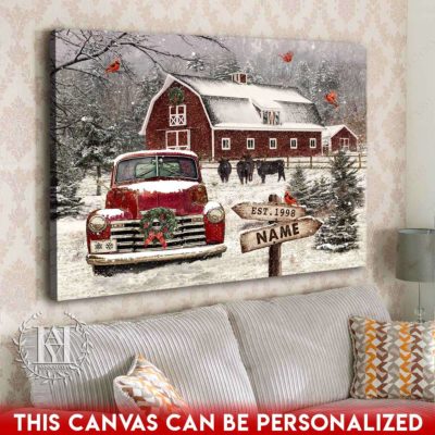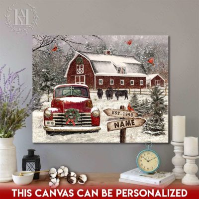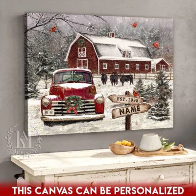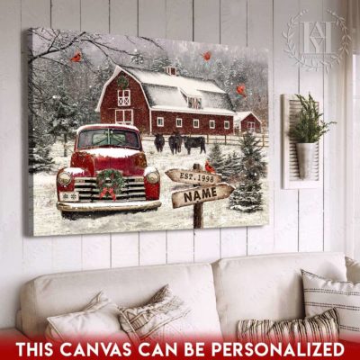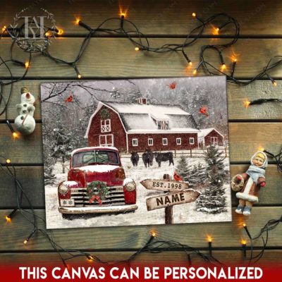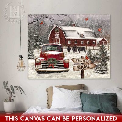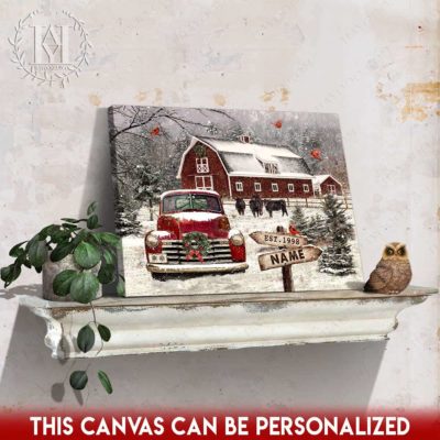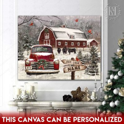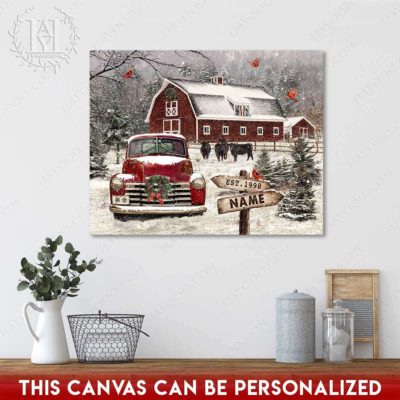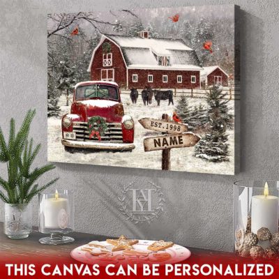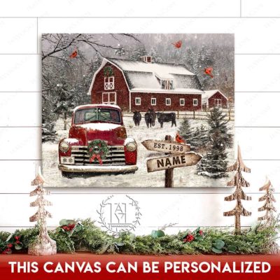 Hayooo Christmas Canvas Gift For Farmers With Snowy Barn And Truck Wall Art For Holiday Decor