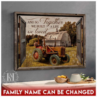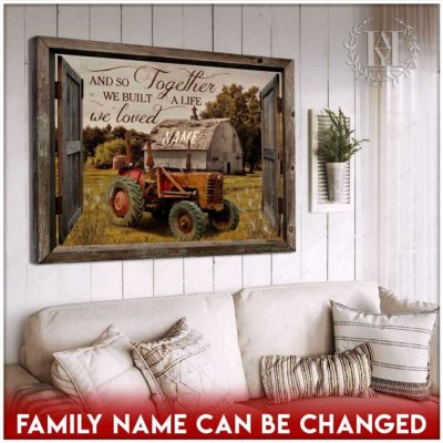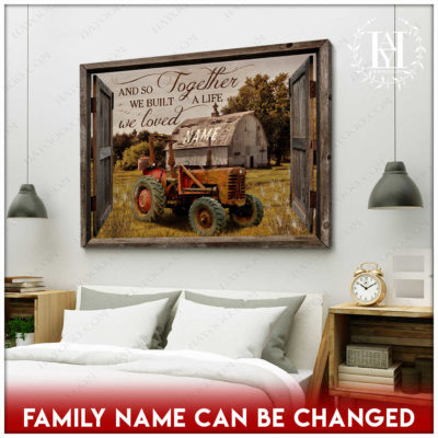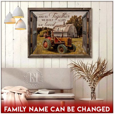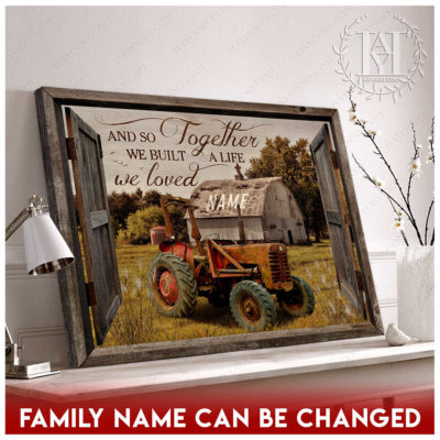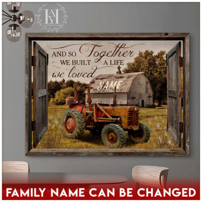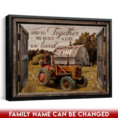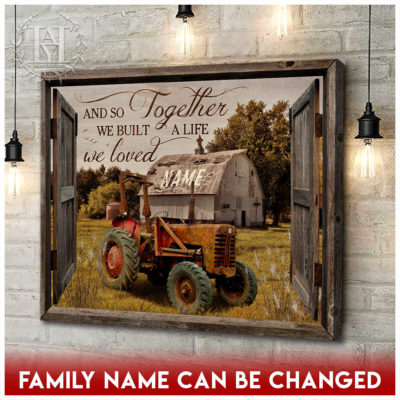 Hayooo Custom Family Name Canvas With Red Tractor Through Faux Window Wall Art For Farmhouse Decor