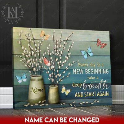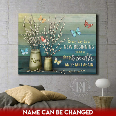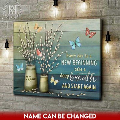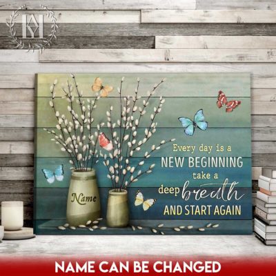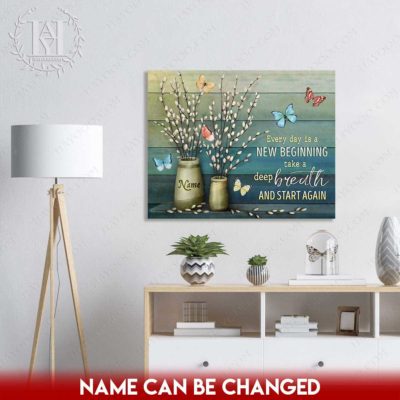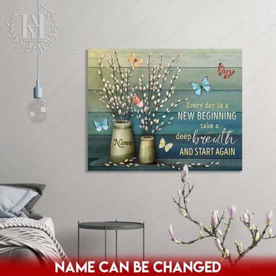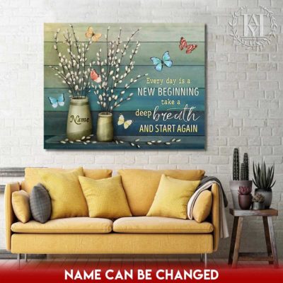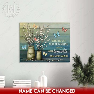 Hayooo Custom Name Canvas Pussy Willows And Butterflies Farmhouse Wall Art New Beginning On Teal