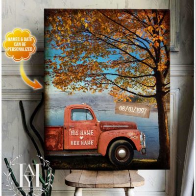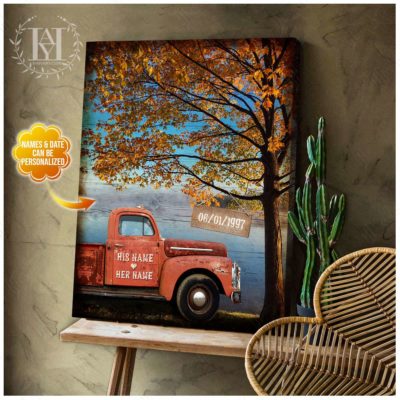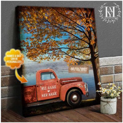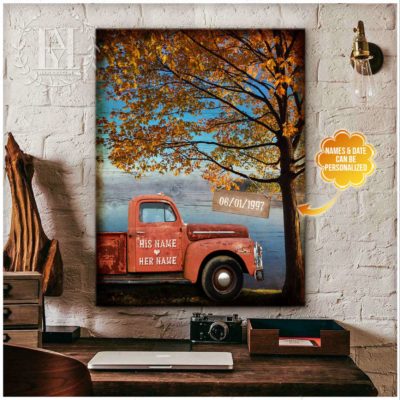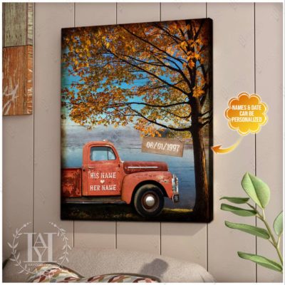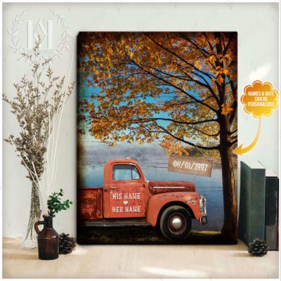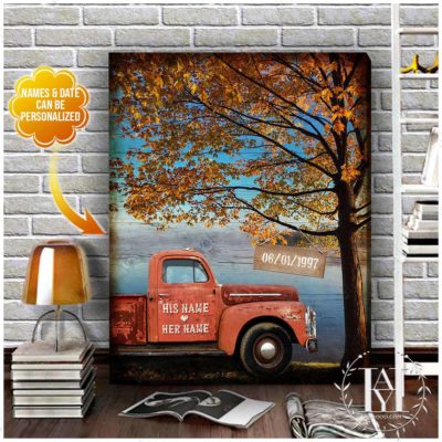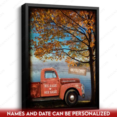 Hayooo Customized Couple Canvas With Pickup Truck And Autumn Tree Best Gift For Your Loved One