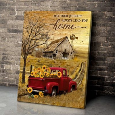 Hayooo Farm Signs Wall Art For Country Home Decor Sunflowers Red Truck Canvas Gifts For Farmers Painting