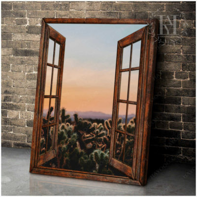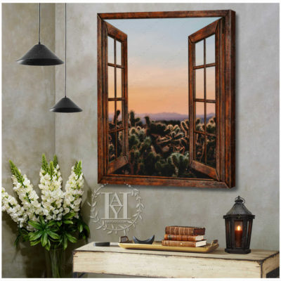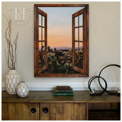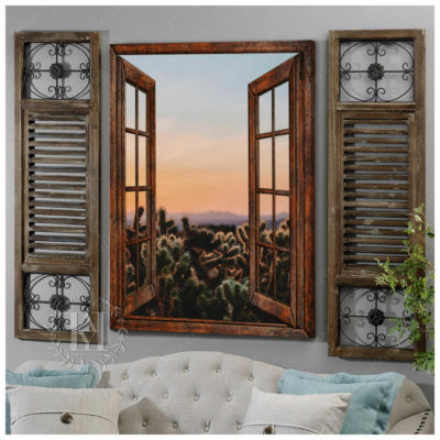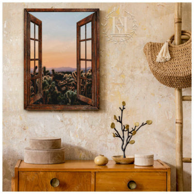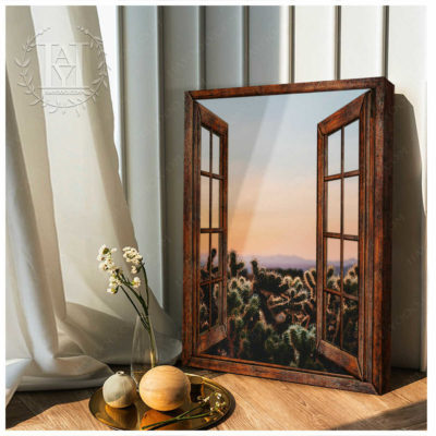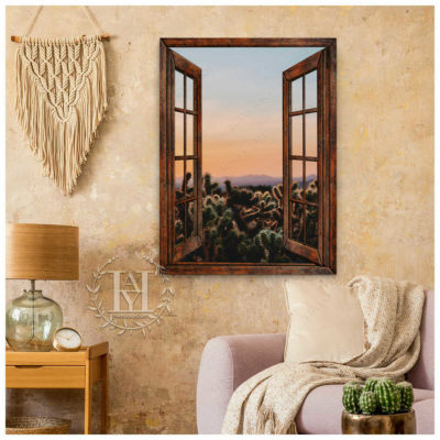 Hayooo Faux Window Beautiful Cacti In The Desert Wall Art For Home Decor