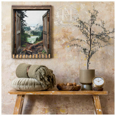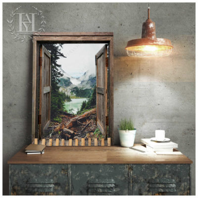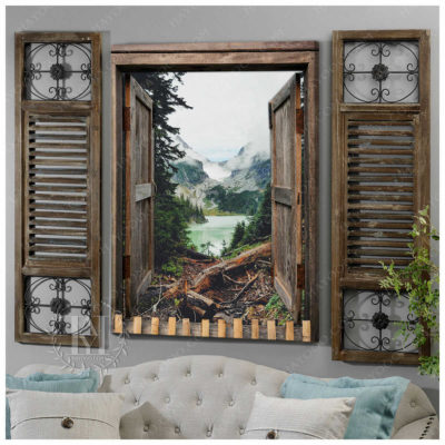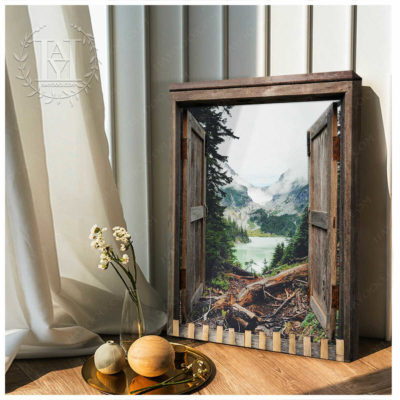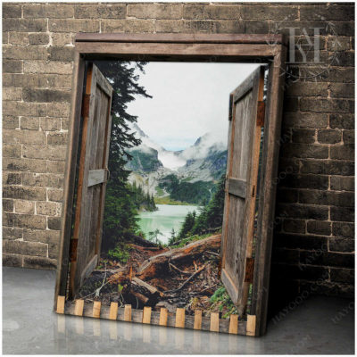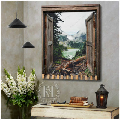 Hayooo Faux Window Canvas Amazing Forest And Mountain Scene Wall Art For Home Decor