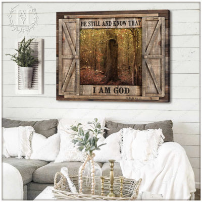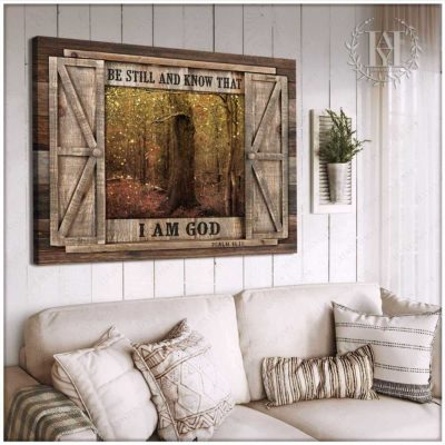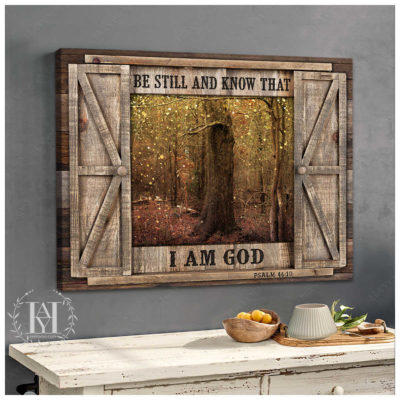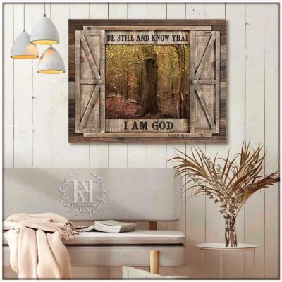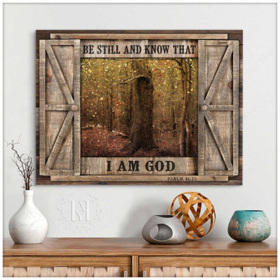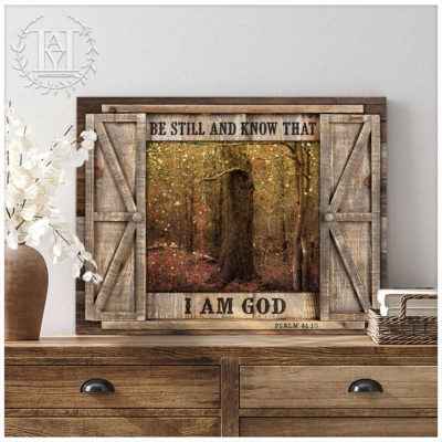 Hayooo Faux Window Canvas Beautiful Forest Scenery Be Still And Know That I Am God Wall Art For Home Decor