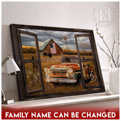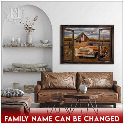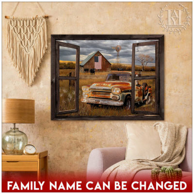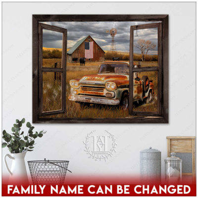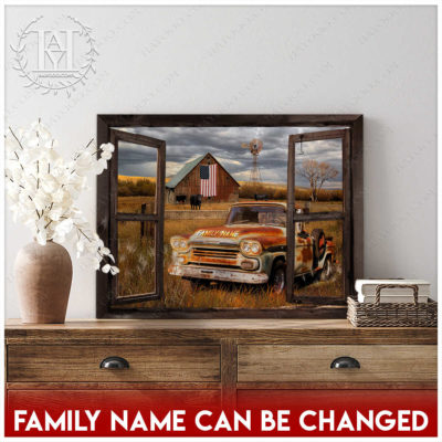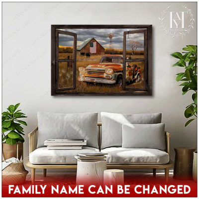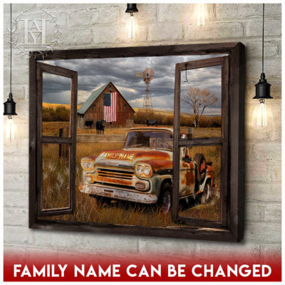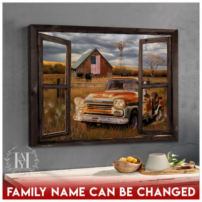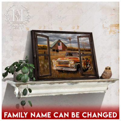 Hayooo Faux Window Canvas Custom Family Name Pickup Truck Old Barn Memorial Days