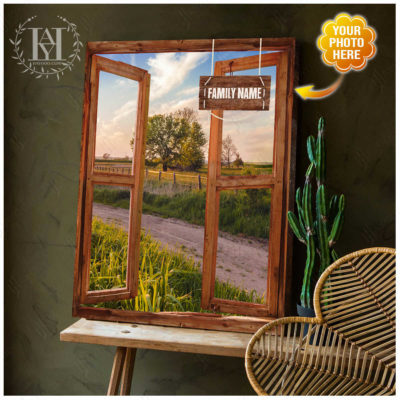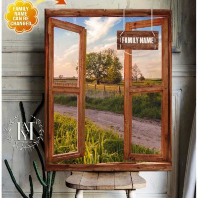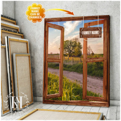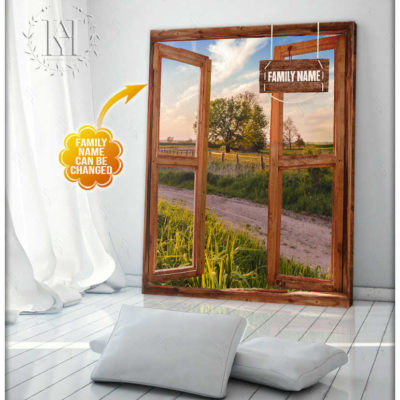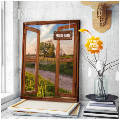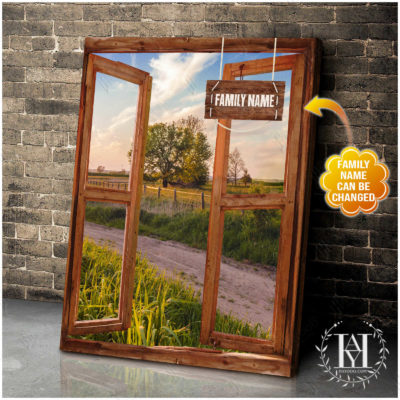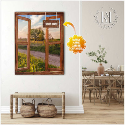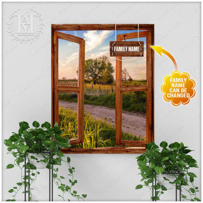 Hayooo Custom Family Name Canvas With Baby Blue Pickup Truck And Rustic Barn Through Faux Window Wall Art For Farmhouse Decor