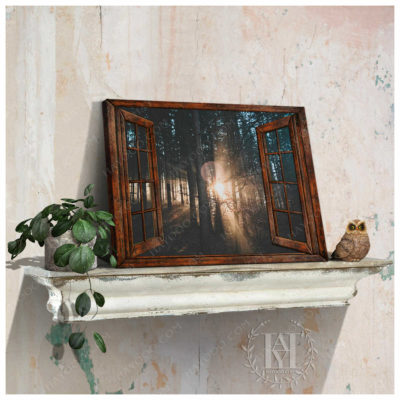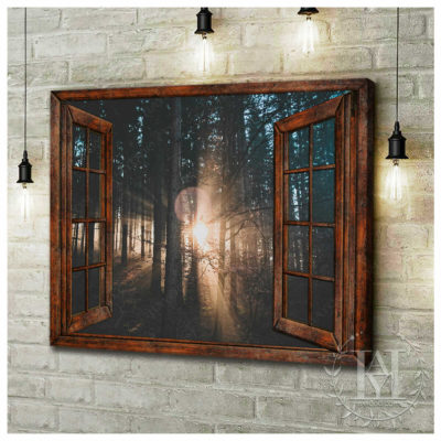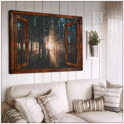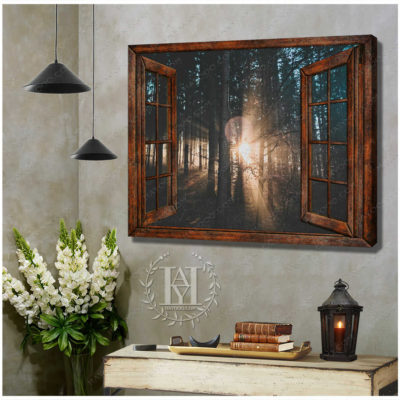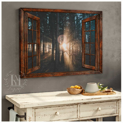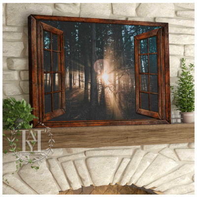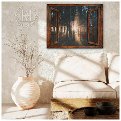 Hayooo Faux Window Canvas Dazzling Sunlight Through Forest Leaves Wall Art For Home Decor