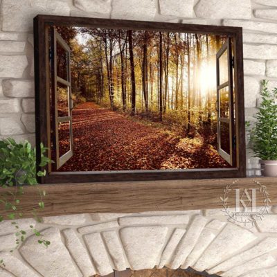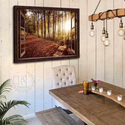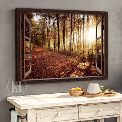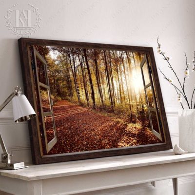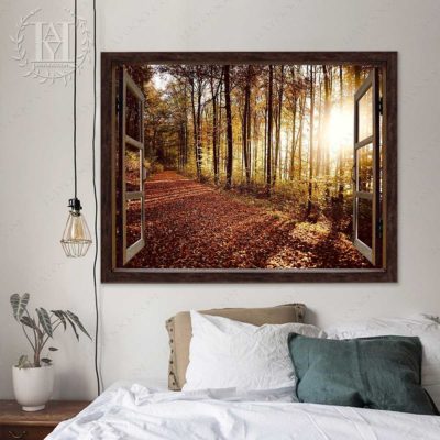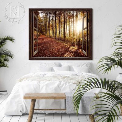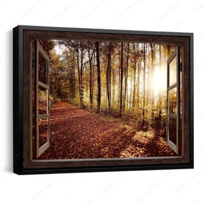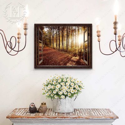 Hayooo Faux Window Canvas Gorgeous Autumn Forest In The Morning Wall Art For Home Decor