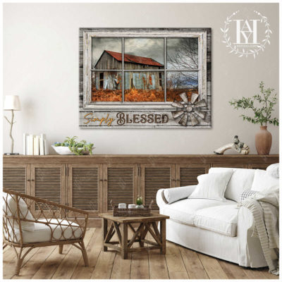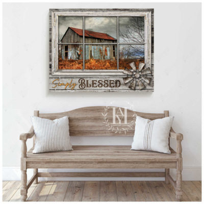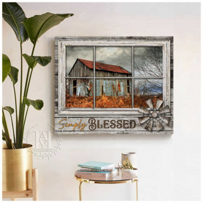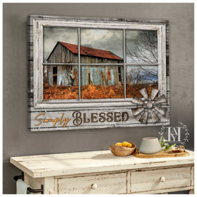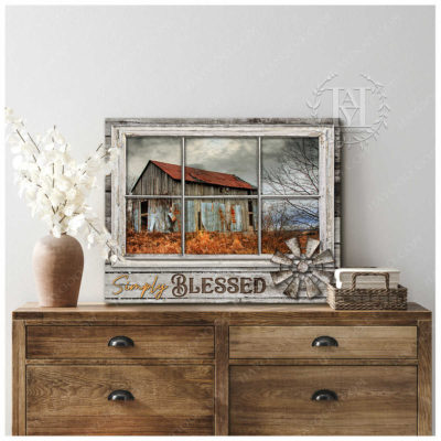 Hayooo Faux Window Canvas Gorgeous Barn With Moody Sky Simply Blessed Wall Art For Farmhouse Decor