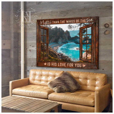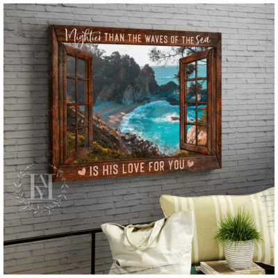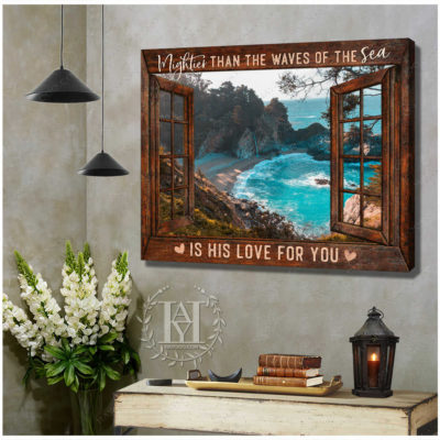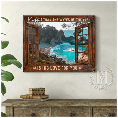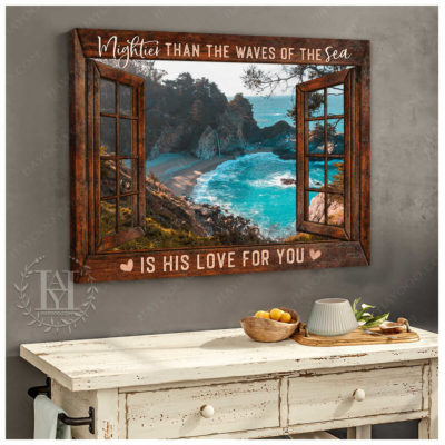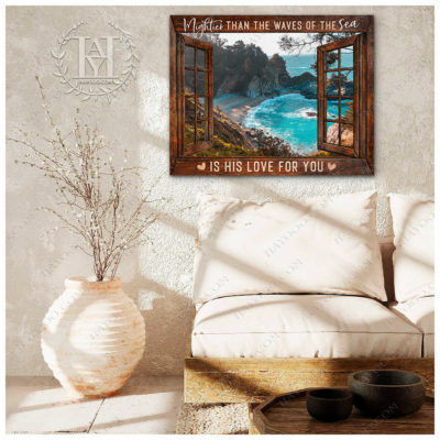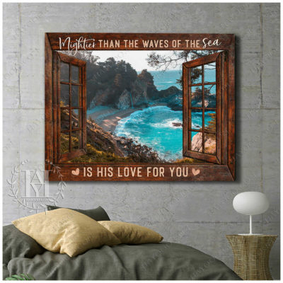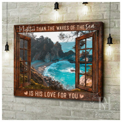 Hayooo Faux Window Canvas Gorgeous Coastal Scene Mightier Than The Waves Of The Sea Is His Love For You