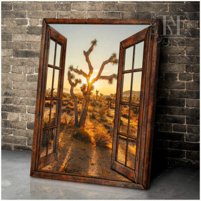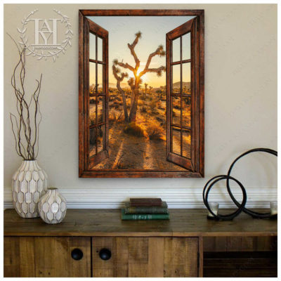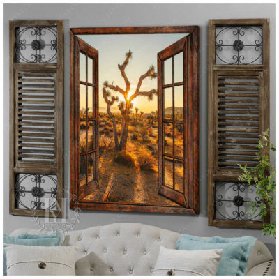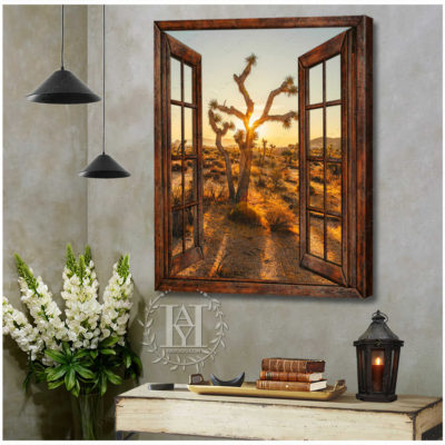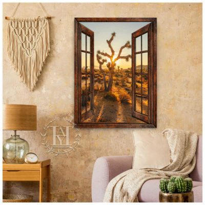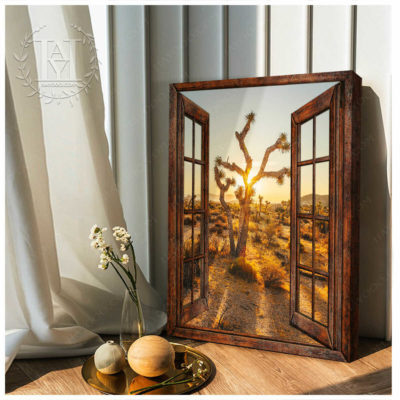 Hayooo Faux Window Canvas Gorgeous Desert Scene With Dazzling Sunlight Wall Art For Home Decor