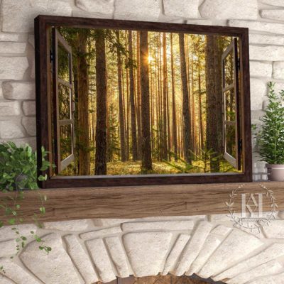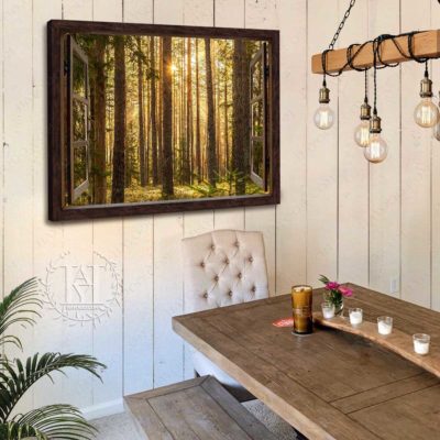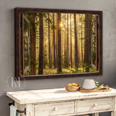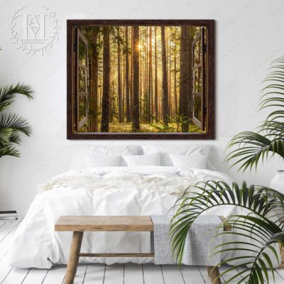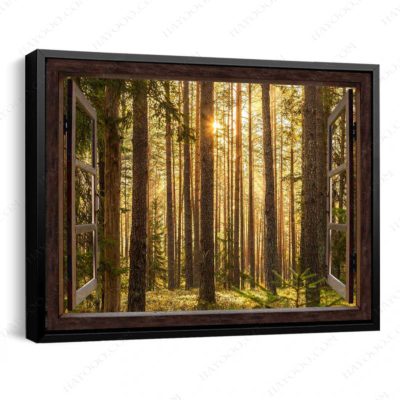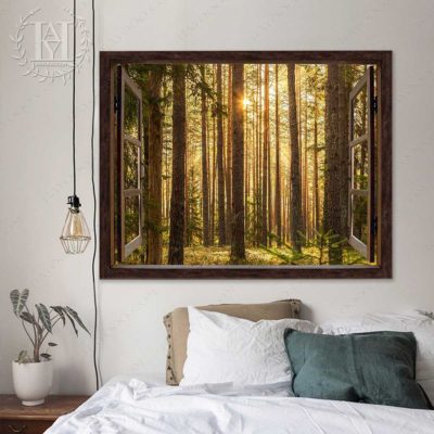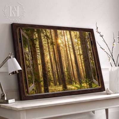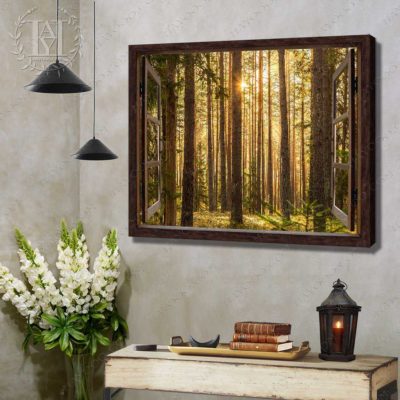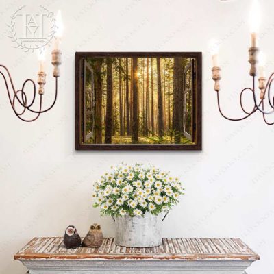 Hayooo Faux Window Canvas Gorgeous Green Forest With Sunlight Wall Art For Home Decor