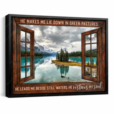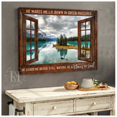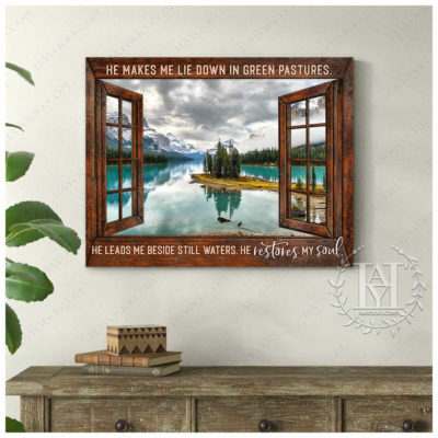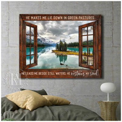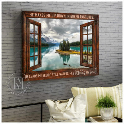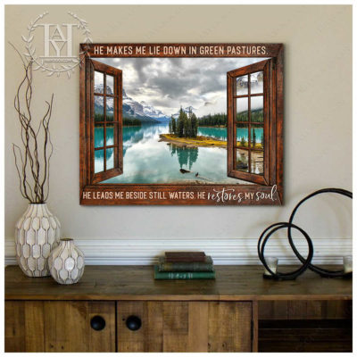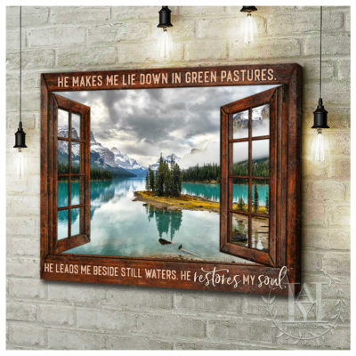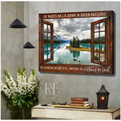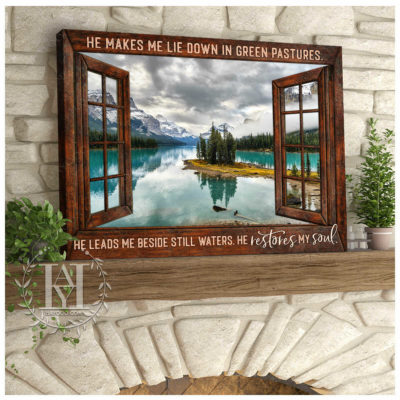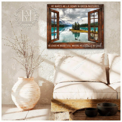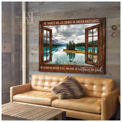 Hayooo Faux Window Canvas Gorgeous Lake Scene He Leads Me Beside Still Waters He Restores My Soul