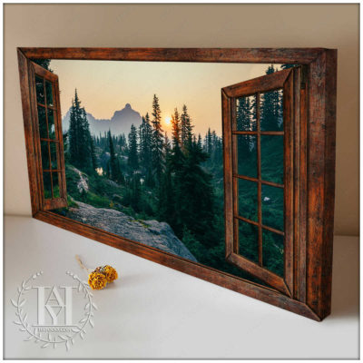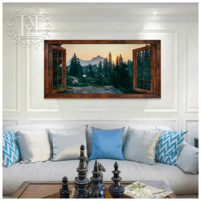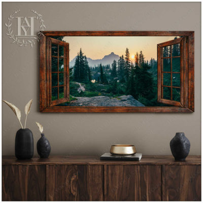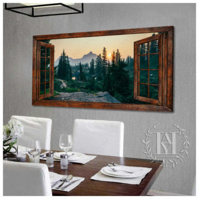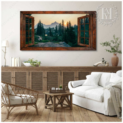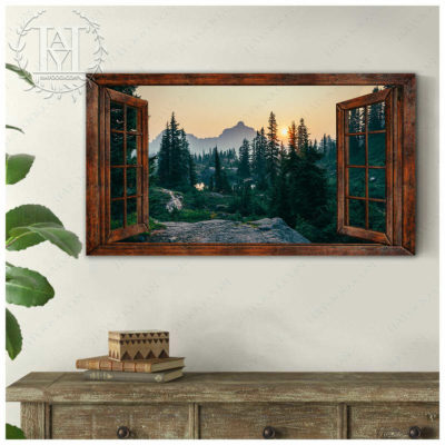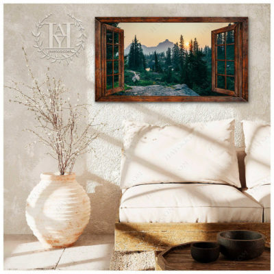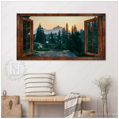 Hayooo Faux Window Canvas Gorgeous Morning Forest Scene Wall Art For Home Decor