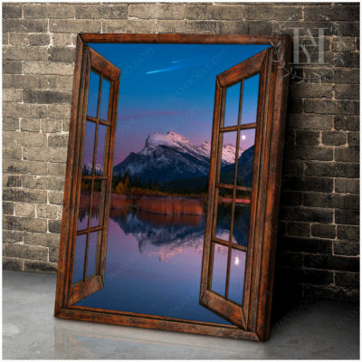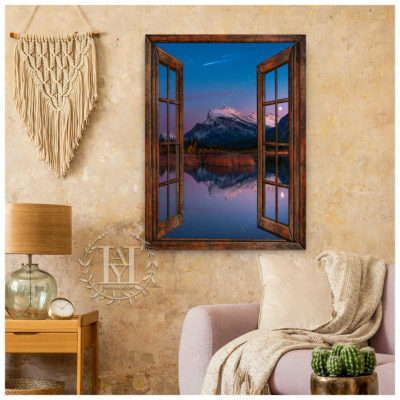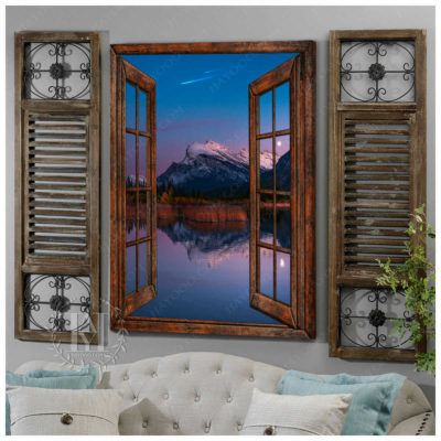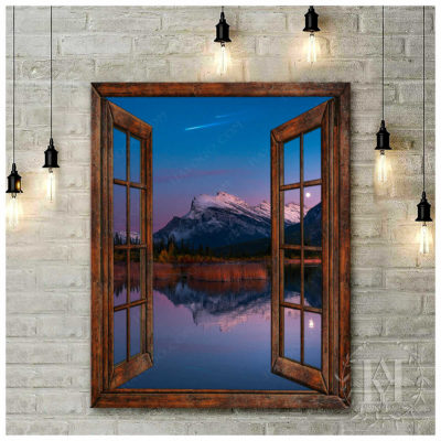 Hayooo Faux Window Canvas Heavenly Lake And Mountain Scene Wall Art For Home Decor