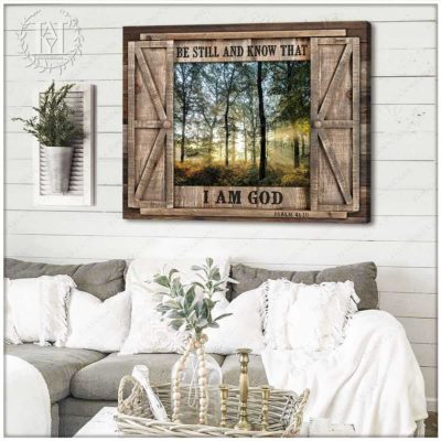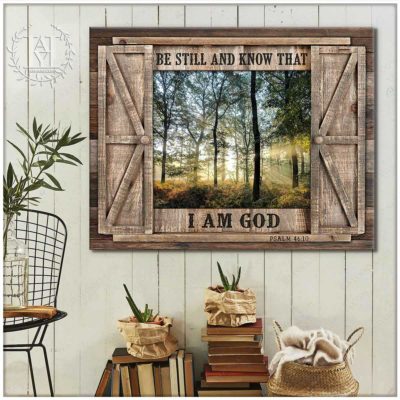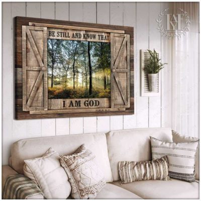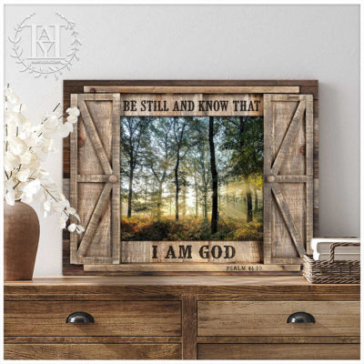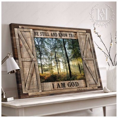 Hayooo Faux Window Canvas Morning Forest Be Still And Know That I Am God Wall Art For Home Decor