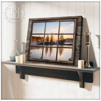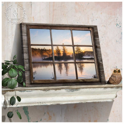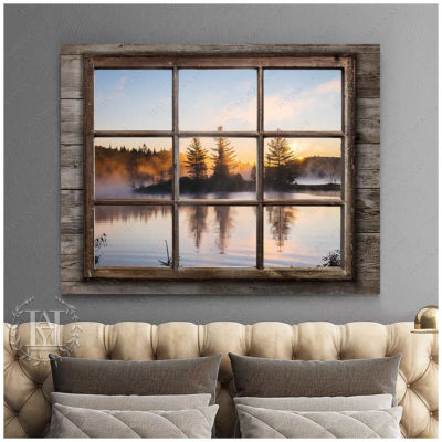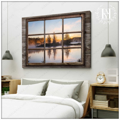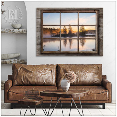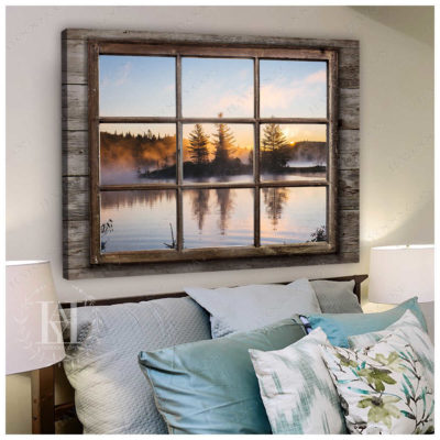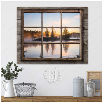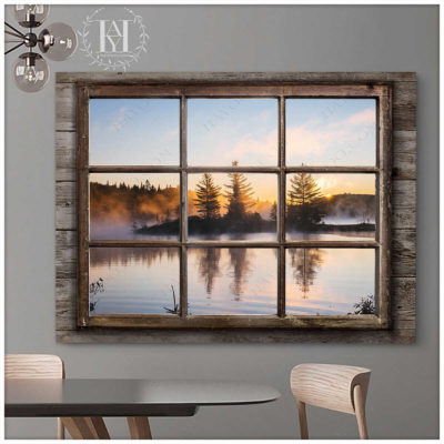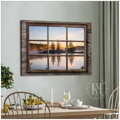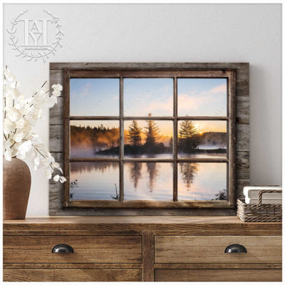 Hayooo Faux Window Canvas Peaceful Lake In The Morning