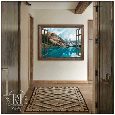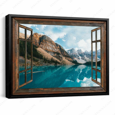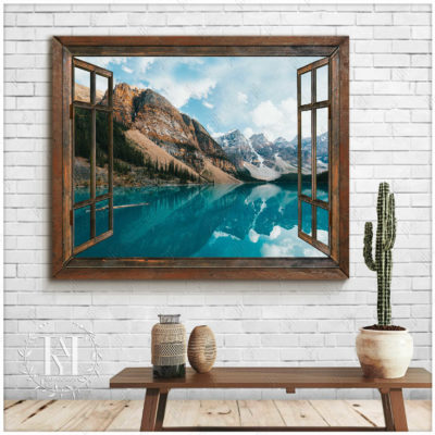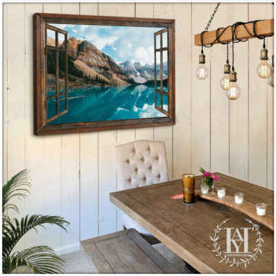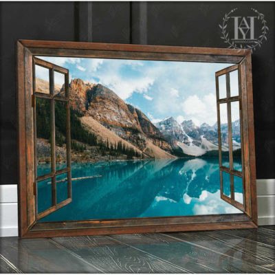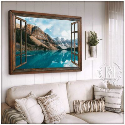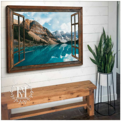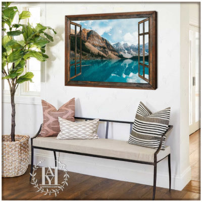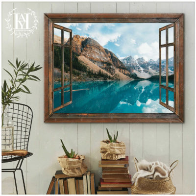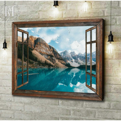 Hayooo Faux Window Canvas Picturesque Lake And Mountain Scene Wall Art For Home Decor