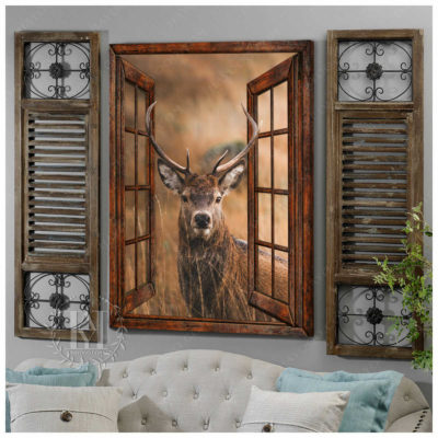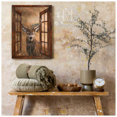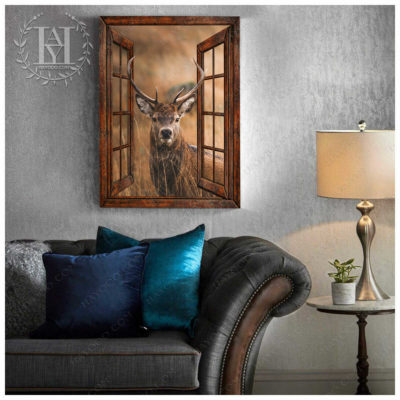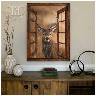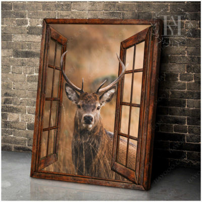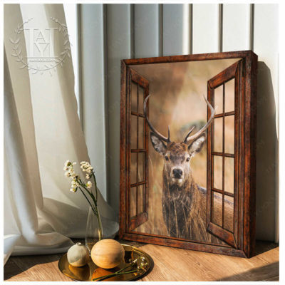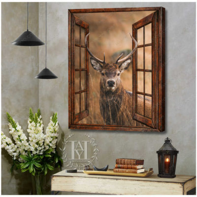Hayooo Faux Window Canvas With Cute Deer Wall Art For Home Decor