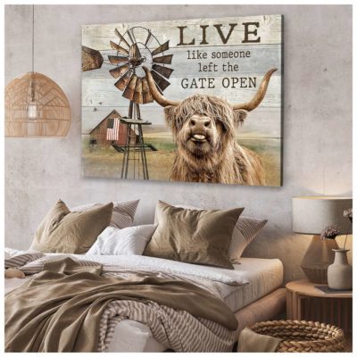 Hayooo Highland Cow Wall Art Best Gifts for Farmers Rustic Barn and Windmill