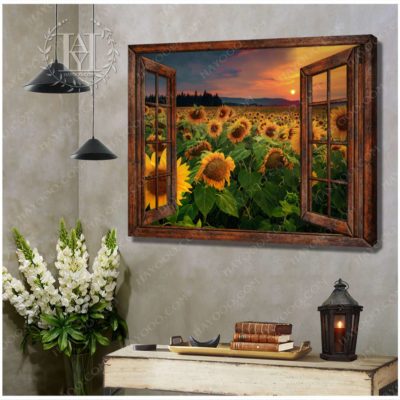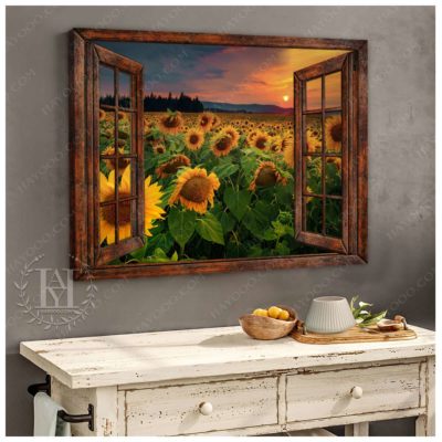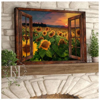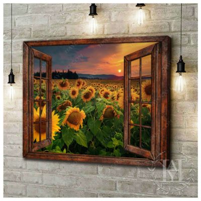 Hayooo Mother’s Day Gardening Gifts Sunflower Field Wall Art Faux Window Canvas Summer Home Decor
