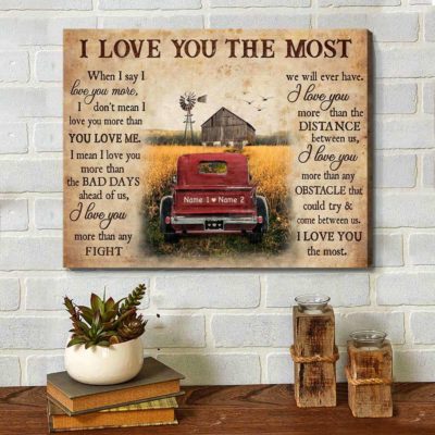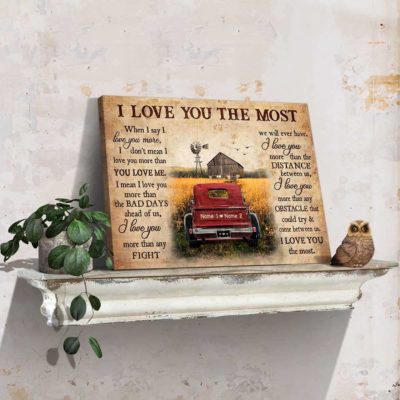 Hayooo Personalized Canvas 15th Year Wedding Anniversary Gifts for Farmer Husband, Valentine Gifts For Farmers, To My Husband, Old Pickup Truck And Rustic Barn