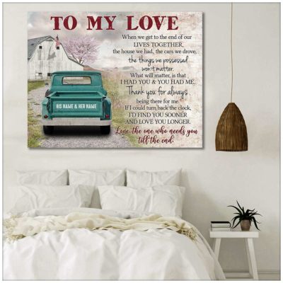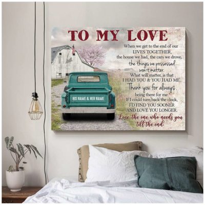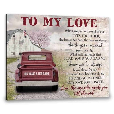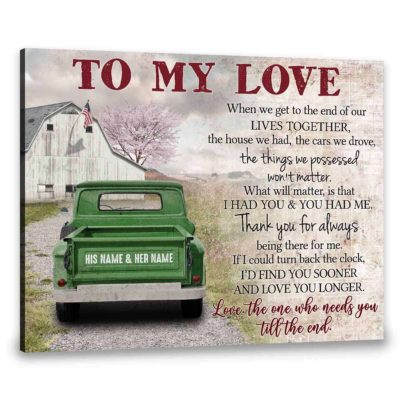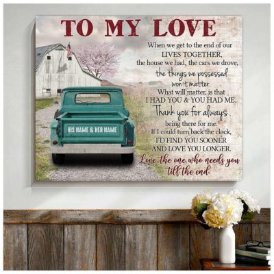 Hayooo Personalized Canvas 5 Year Wedding Anniversary Gifts for Farmers, Couple Canvas Gifts Spring Barn And Pickup Truck Romantic Gift For Your Partner