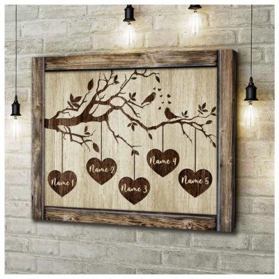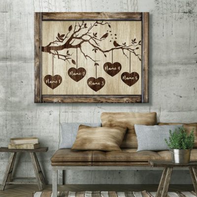 Hayooo Personalized Canvas Beautiful Family Tree Through Faux Window Wall Art Hearts With Names