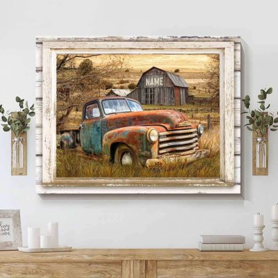 Hayooo Personalized Canvas Gifts For Farmers Best Birthday Gift For Dad Old Farm Truck And Rustic Barn Wall Art